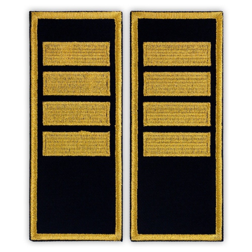 Grade agent sef penitenciar, grad ANP - simplu , la o calitate superioara lucrate cu atentie la detalii. Aceste grade sunt brodate cu fir metalic auriu pe un suport confectionat din tesatura 65/35% bumbac/polyester  de culoare indigo / navy cu intaritura termocolanta.Alegand acest produs puteti opta pentru varianta tubulara denumita si grad de serviciu. Fundalul este simplu fara tiparul cu frunze de stejar . Dimensiunile produselor noastre respecta in totalitate indicatiile oferite de dispozitiile in vigoare 12x5 cm.Va oferim grade militare brodate rezistente in conditii meteo dificile pentru a fi potrivite inclusiv in cazul utilizarii in exterior. Atentia oferita detaliilor si broderia de calitate vor face ca produsele noastre sa se distinga printre altele similare.