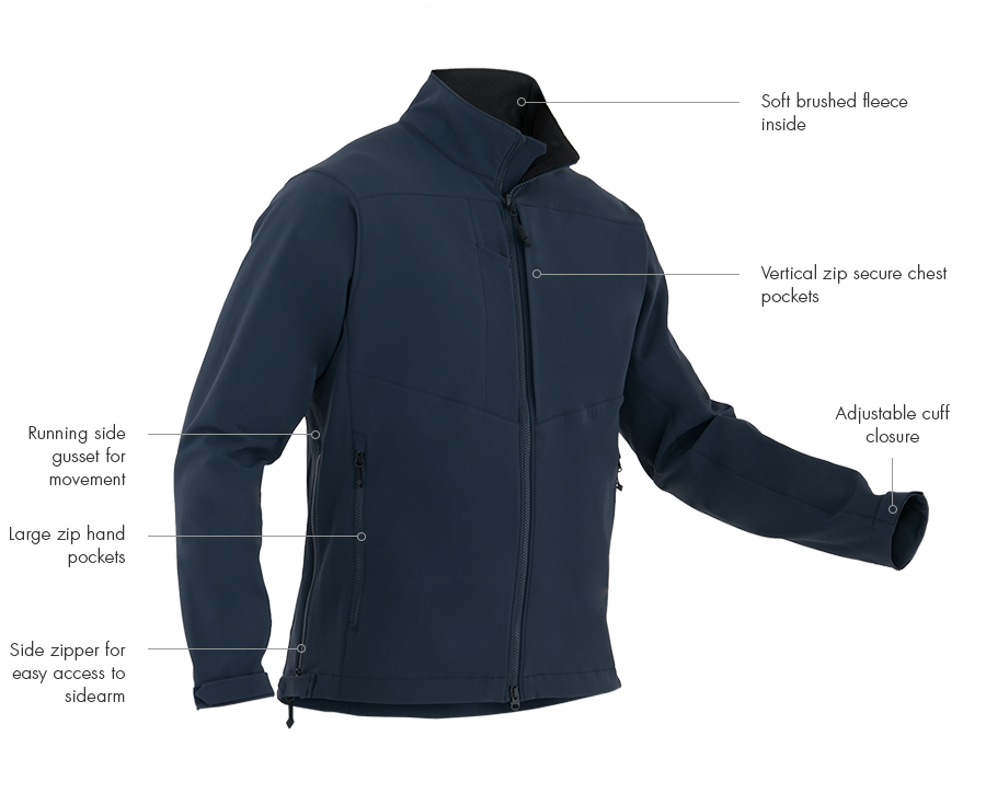 • The First Tactical SoftShell Jacket is an extra flexible outerwear