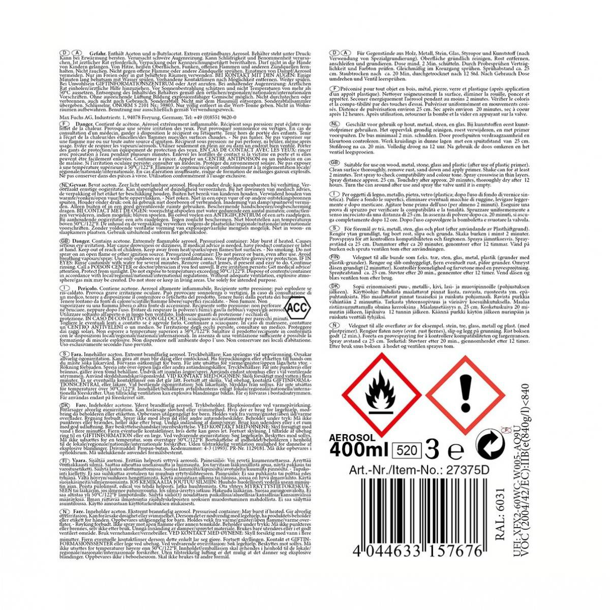 - contains: Acetone, n-butyl-acetate - pressurized container, highly flammable!