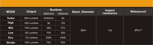 Battery type: 1 * 18650 or 2 *18650 or 3 * 18650