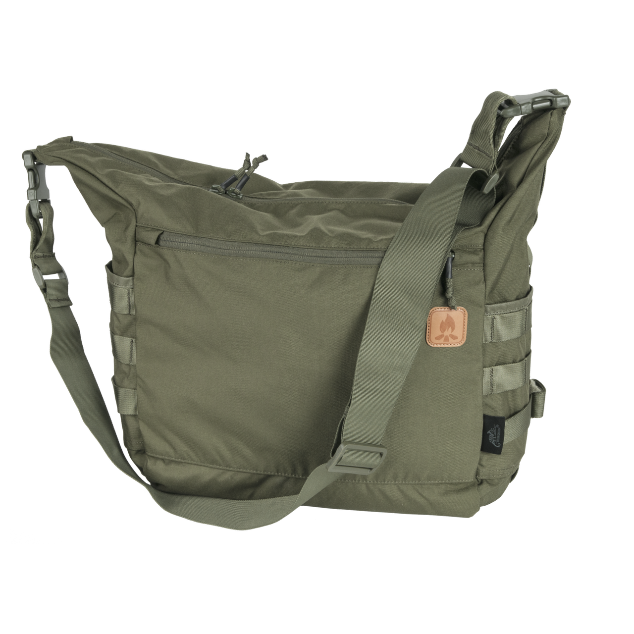 Bushcraft Satchel® is our general-purpose field bag. May be used as a carry-all for a one-day outing, or for everyday urban activities. Extremely capacious. The main chamber comprises a zippered mesh pocket for valuable items plus two elastic drawstring pockets, e.g. water bottle holders. On the outside, the bag has a large zippered pocket and two open pockets. MOLLE/PALS panels at the sides and bottom loops allow attaching additional pouches and items. Compression straps allow size adjustment.