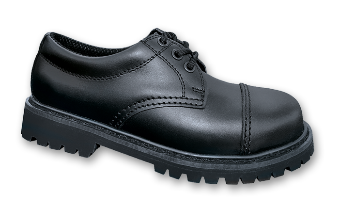 Low shoes, 3 hole, black, steel cap, screws