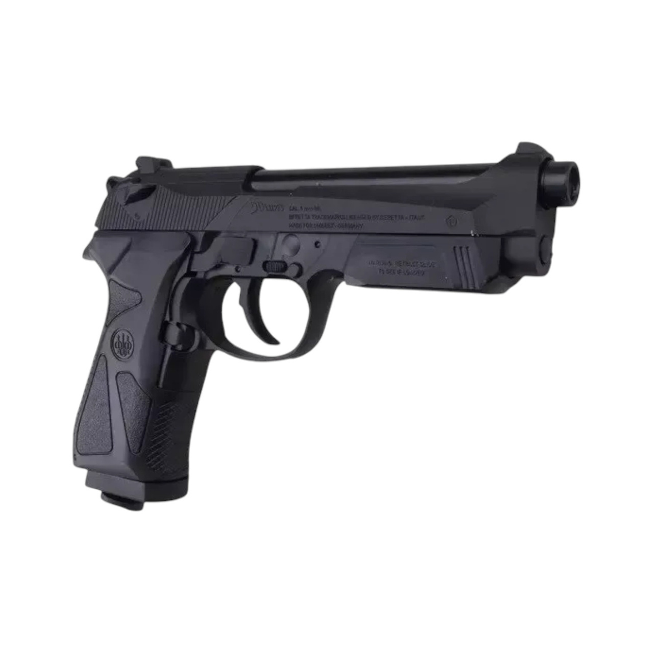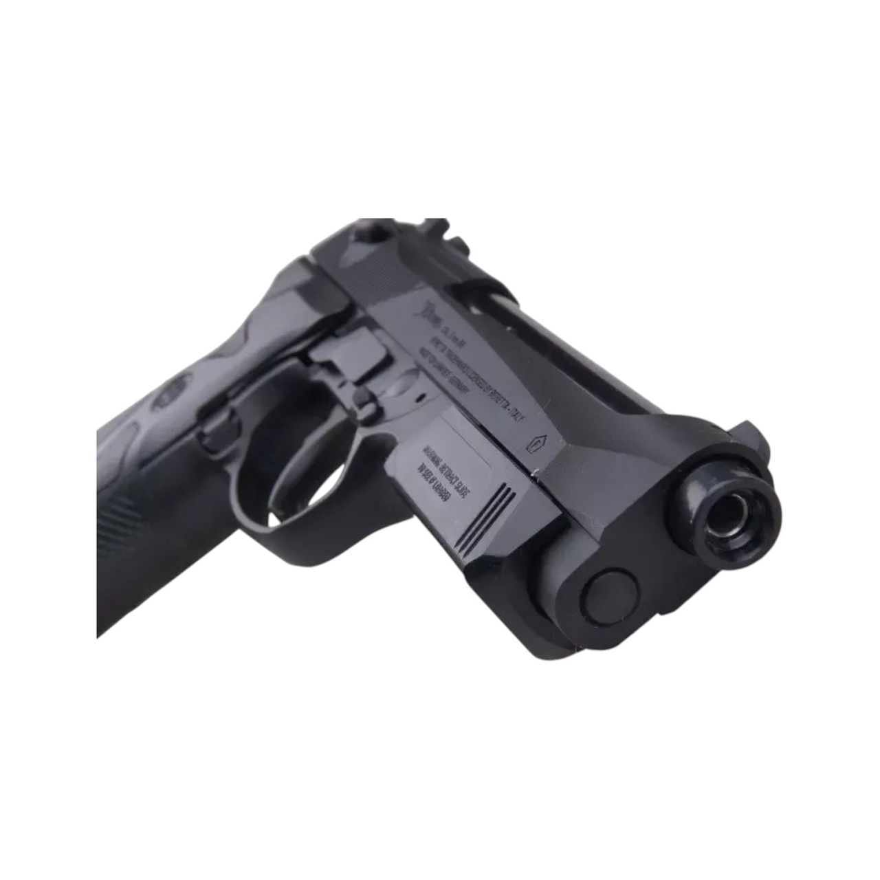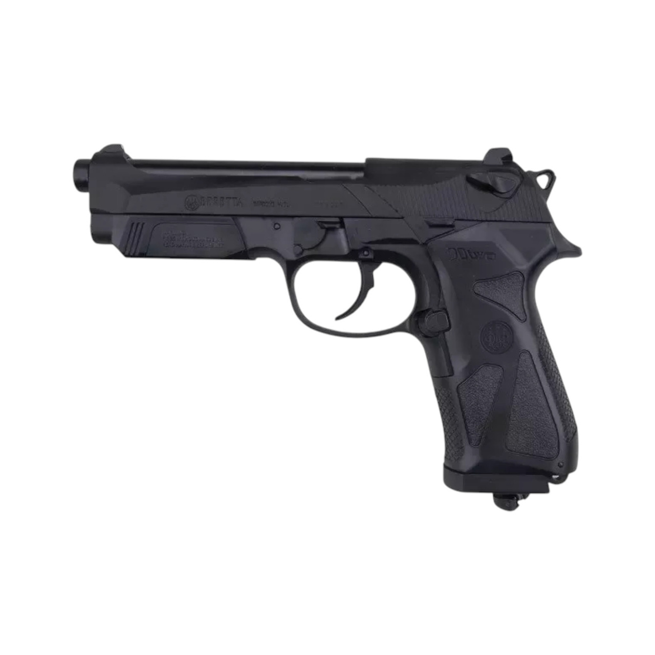 The Beretta 90TWO replica, manufactured by Umarex, combines metal with durable plastic. The bullet, trigger, hammer and other components are made of metal, while the frame of the replica, the inner barrel and part of the magazine are made of plastic.