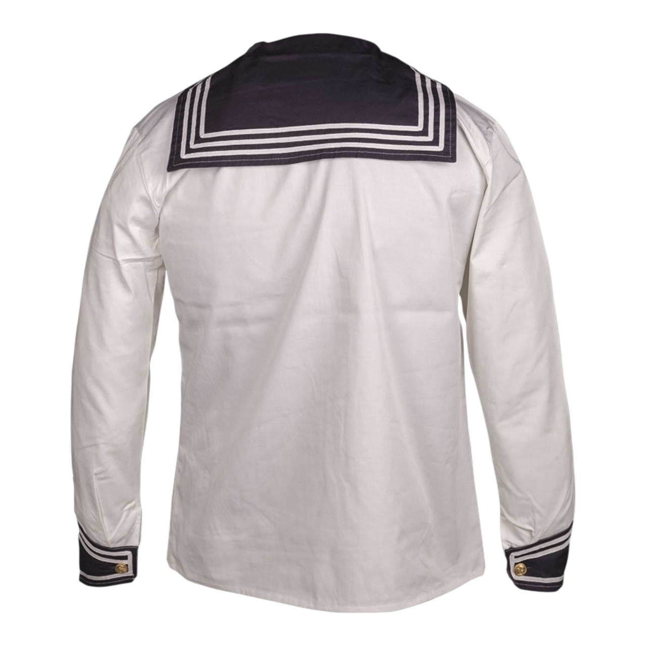 - sleeves with blue-white cuffs and gold buttons with anchor theme