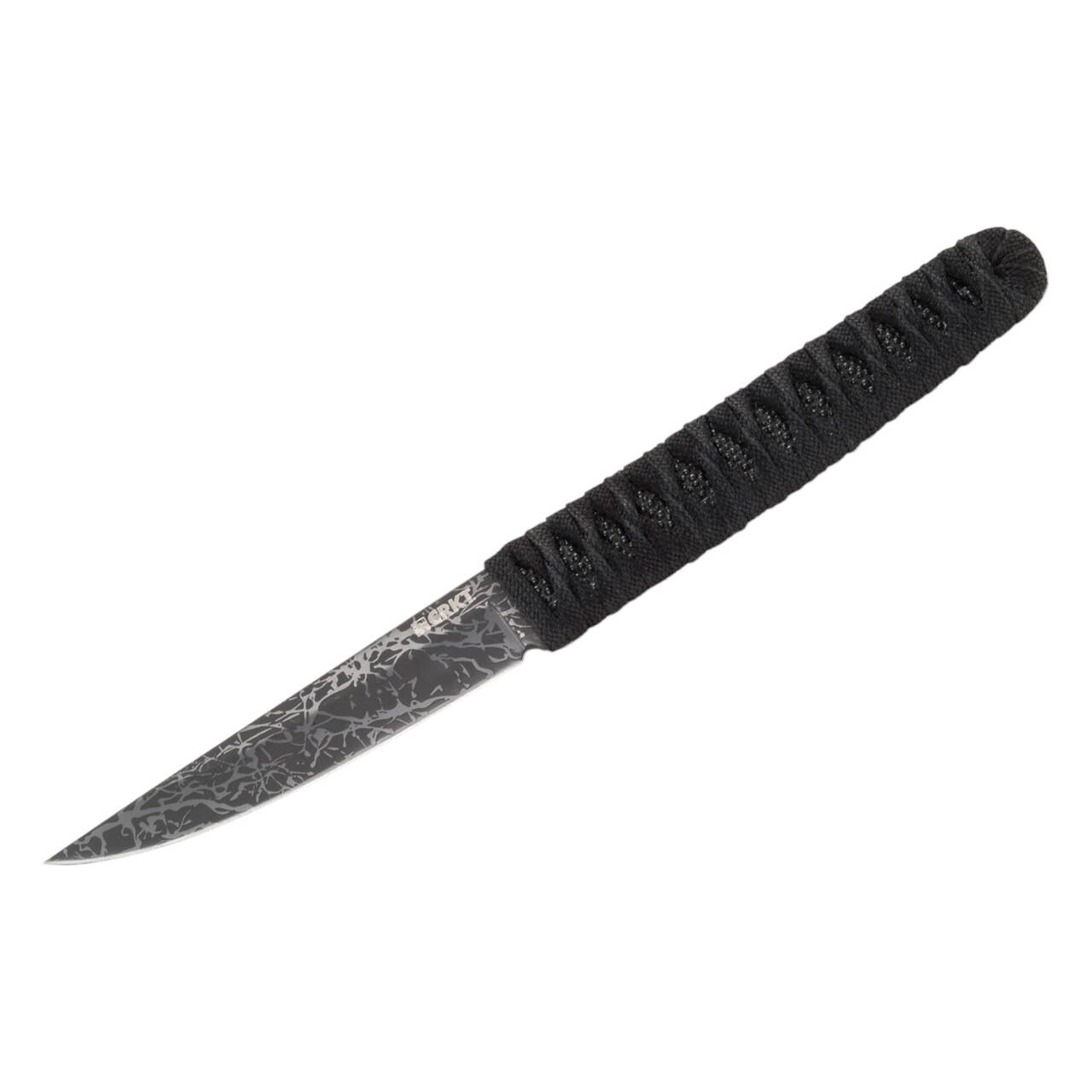 Lucas Burnley designed the CRKT Obake as an uncomplicated, tactical-inspired EDC knife with an acid-finished blade. The artful combination of classic knife shape and modern materials is stripped down to its essentials: a strong piece of 8Cr14MoV steel, a traditionally wrapped handle, and the unusual Acid Wash finish, with slim zytel sheath, lanyard, and skull bead.