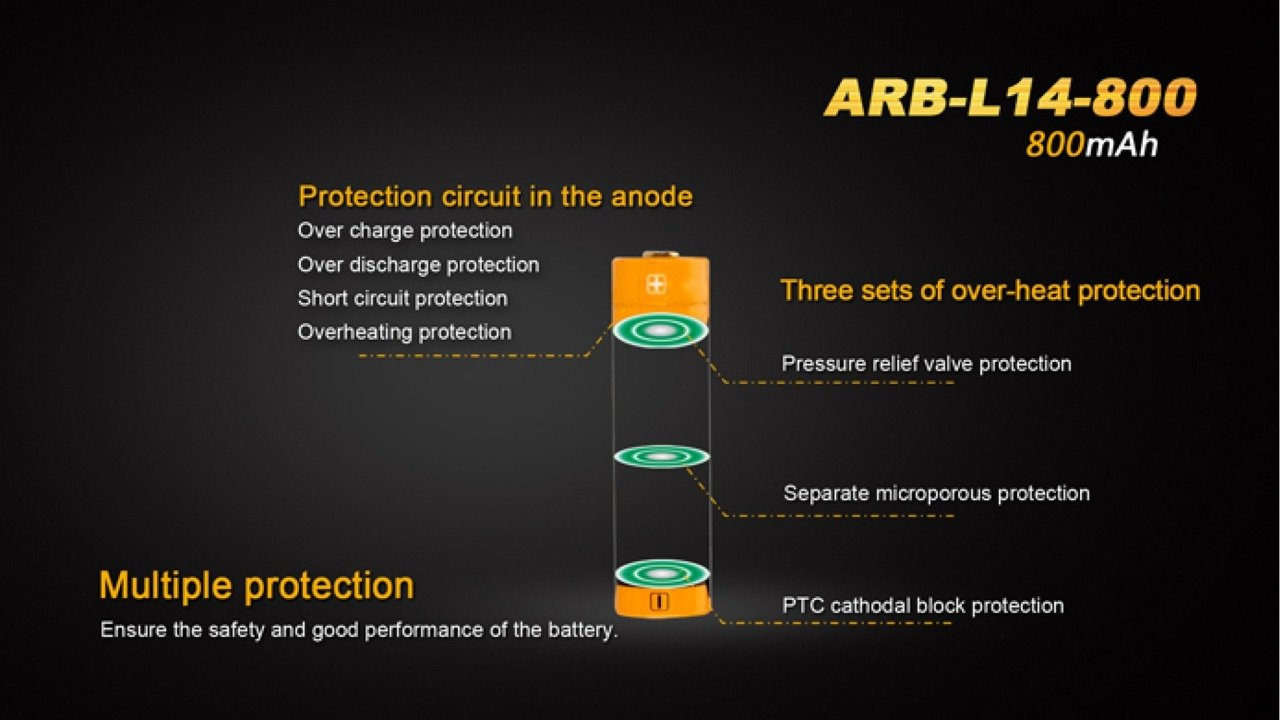 Type 14500 Li-Ion rechargeable battery (AA format) with 3.7V, for use in the Fenix LD11 and other AA lamps specifically approved for this rechargeable battery.