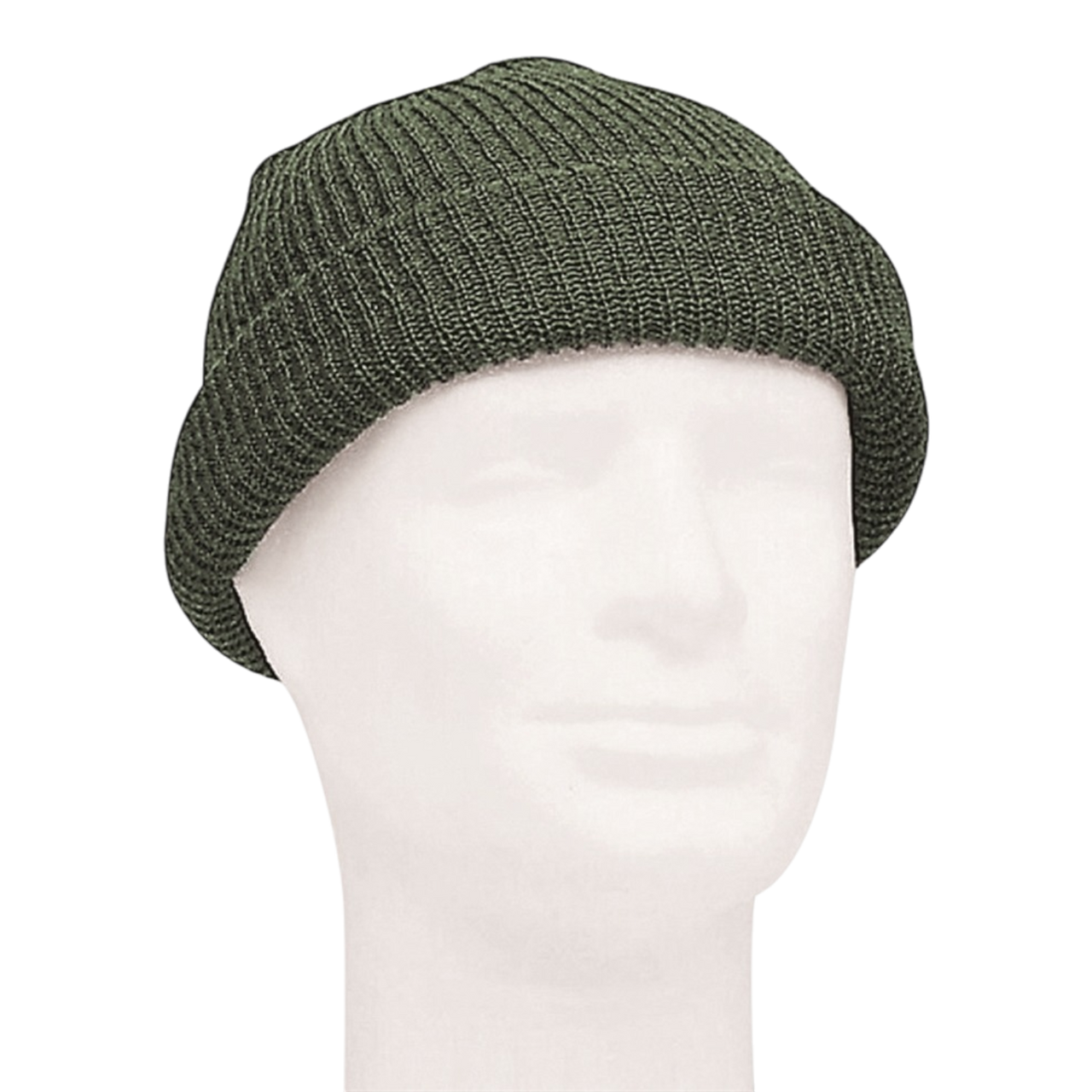 The Watch Cap Wool Cap is a close-fitting knit cap that is optimal in cold weather conditions. It can also be pulled down over the ears or simply cover the head by folding up the bottom.