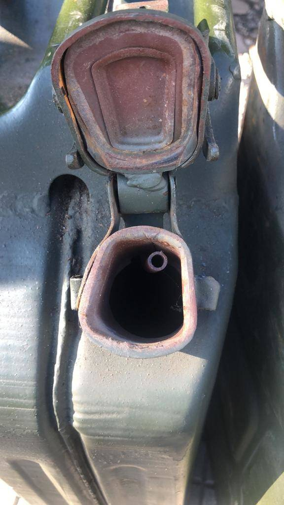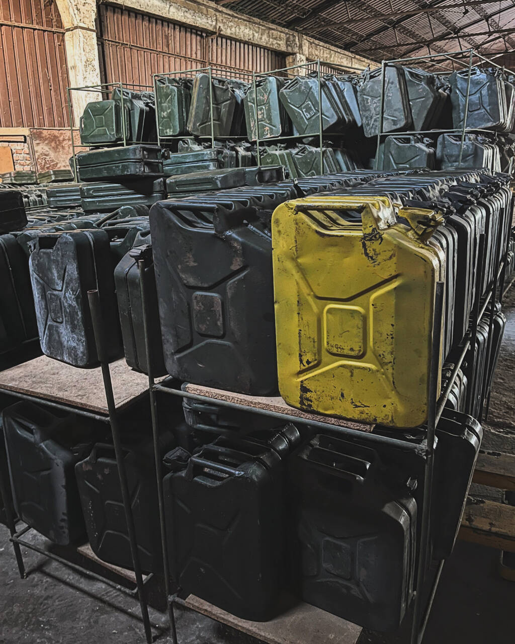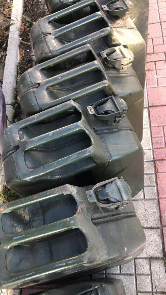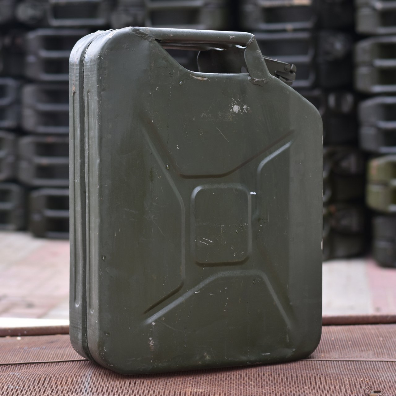 Metal canister with 20 L capacity, genuine military surplus, from the stock of the Romanian Army.