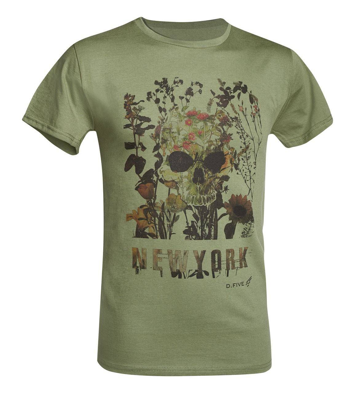 PRINTED T-SHIRT - SKULL WITH FLOWERS - D.FIVE - OD GREEN