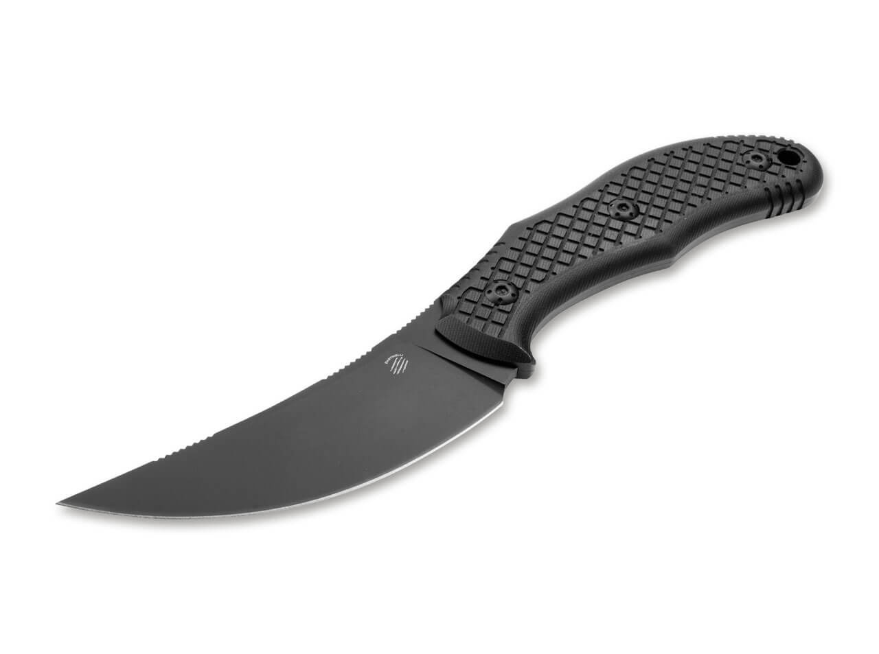 The absolutely practical Bastinelli Chopper was specially developed for the RAID special unit of the French National Police, which was founded in 1985 in response to a series of bomb attacks and has since been used to fight terrorism across France. The full tang made of powder-metallurgical M390 knife is extremely stable and thanks to the additional PVD coating extremely resistant. The non-slip handle is made of textured G10 and lies particularly securely in the hand, while grooves in the area of ​​the thumb rest additionally increase work safety. With lanyard hole and precisely fitting Kydex sheath.