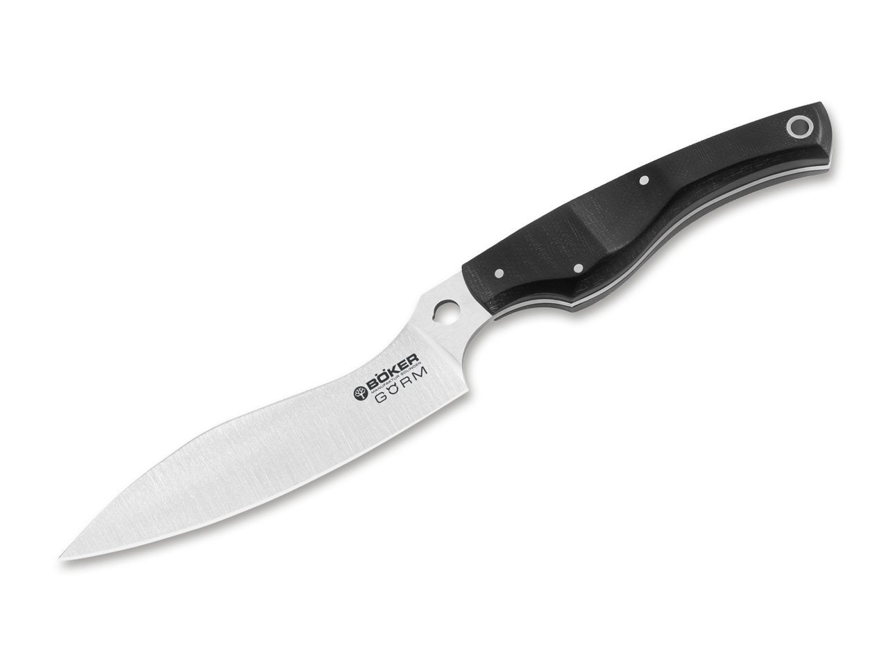 Designed by the renowned knifemaker Jesper Voxnaes from Denmark, the homeland of the Vikings, and handmade in the Boker Manufactory in Solingen, Germany, the home of high quality blades, the Gorm combines ageless virtues which make this knife series a real masterpiece of kitchen cutlery. The choice of materials is as extraordinary as the design. Equipped with stainless 440C steel with its high edge retention and a Rockwell hardness of 58-59° HRC. The characteristically shaped hole in the blade provides excellent control while you choke forward on the handle like the professional chefs do. From an ergonomic standpoint, the Gorm sets a new standard. The handle scales are made of milled canvas Micarta with the typical linen texture.