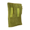 The pouches measure approximately 10 inches by 7 inches by 3 inches and are constructed from a tough, olive drab canvas material that has held up very well through the years. They are two-chambered pouches, meaning that each magazine slips easily into its own chamber within the pouch. An oversized closure flap serves to protect the magazines and is secured via a slotted strap and stud fastener. As noted, there is an exterior pouch that is designed to hold an oil bottle for the AK-47. This pouch could also be used with other small accessories.