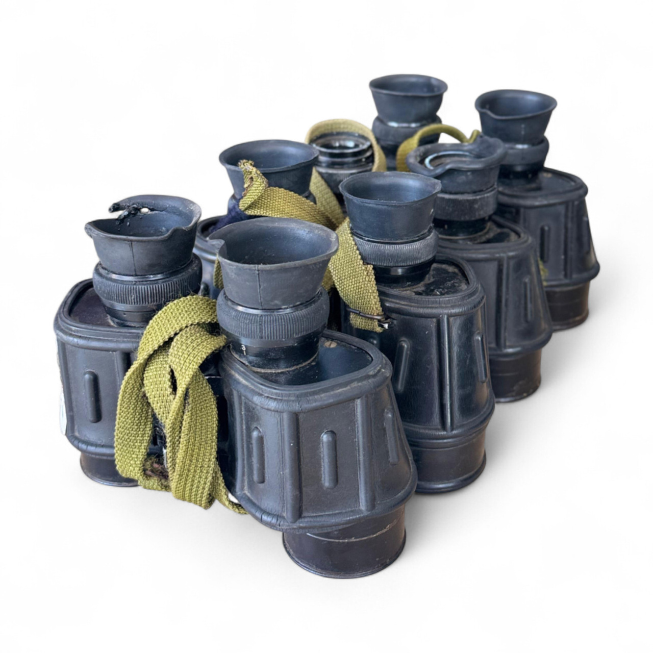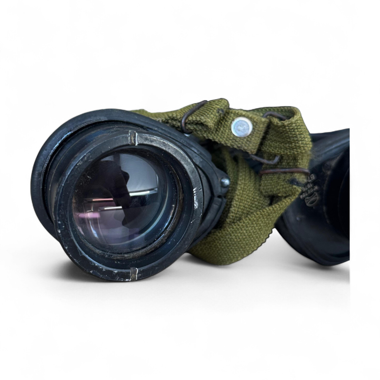 Overall, the binoculars have a distinctly military aesthetic, with the typical patina of equipment used in the field. It may be of interest to collectors or for props, but it requires reconditioning for practical use.