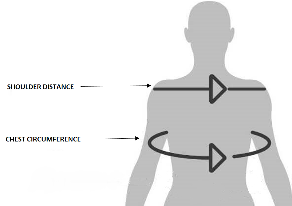 In order to select a product that fits you perfectly, please add your chest circumference and shoulder distance in centimetres in the box below the product code. The correct places for measurements are shown in the image below. These are measurements of the body, not of the garments. We recommend that you take your measurements over your underwear, in order to have the most accurate measurements possible.