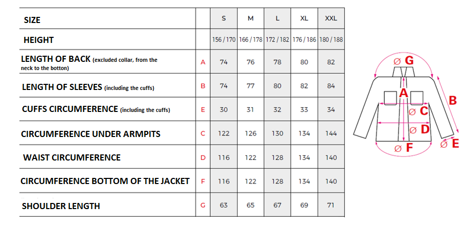 - 2 zipped pockets on sleeves at shoulder height with velcro straps for attaching name tags