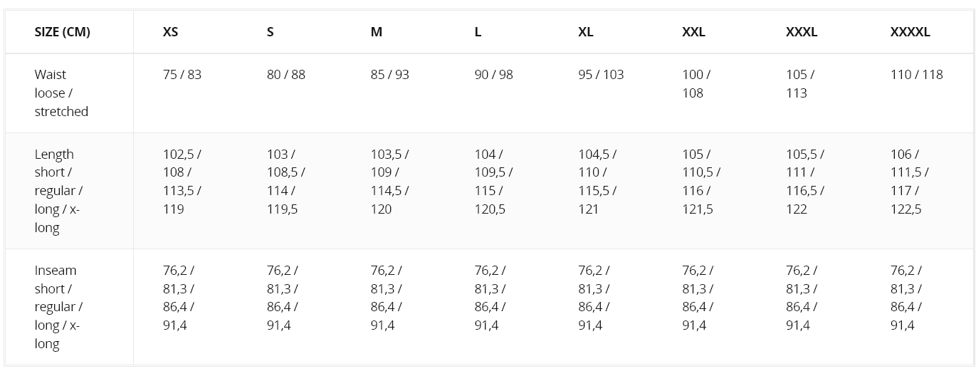 - elastic VersaStretch® panels in crotch and neck area