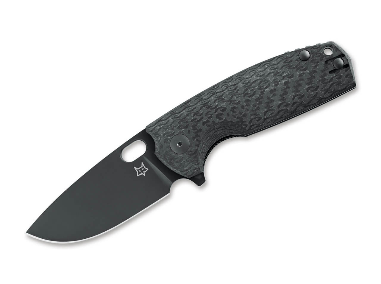 The Fox Vox Core equipped with a black Drop point blade reflects the core of the philosophy of the Danish knife design by Jesper Voxnaes. High utility and distinctive design harmonize as a symbiosis and predestine the Core for everyday life, hunting, or outdoor use. The blade made of stainless Elmax has a flipper and the characteristic slotted hole. The locking mechanism is a sturdy liner lock. The crowned carbon fiber handle scales have a wave pattern and provide a secure grip. The convertible wire clip (tip-up) is made of and can be mounted on both the left and right sides.