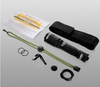 A tactical flashlight that combines a focused, narrow beam with long range.