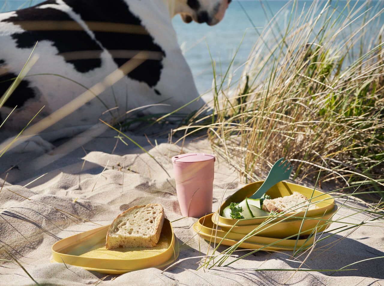 The colorful picnic cutlery made of bio-based plastic is the perfect alternative to disposable knives, forks, or spoons. The reusable knife-fork-spoon combination is lightweight, dishwasher-safe, and BPA-free. Ideal for home and on the go and always with a dose of good humor. 60-piece camping cutlery set in refreshing colors yellow, blue, pink, and green.