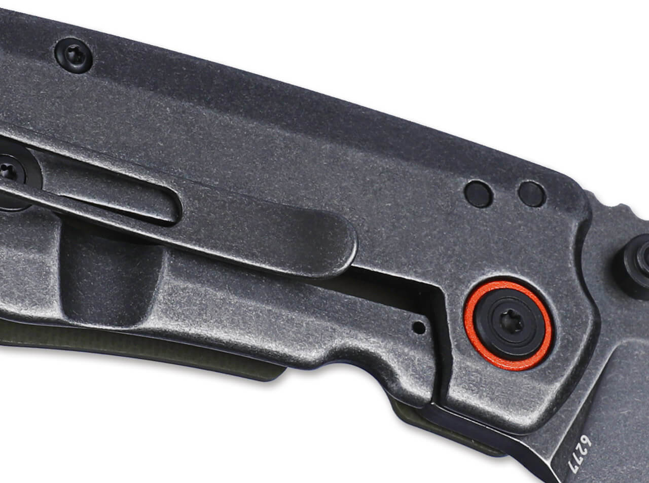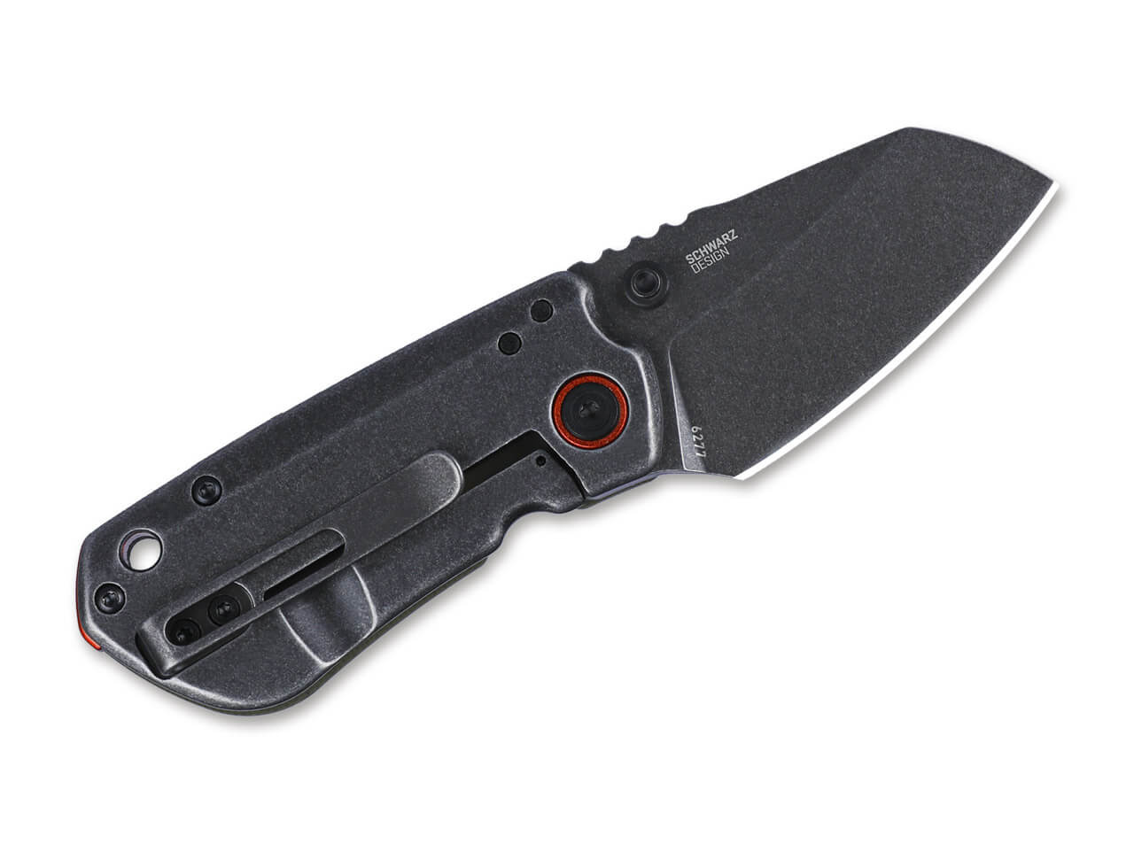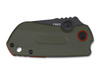Designed by T.J. Schwarz, the CRKT Overland is a compact outdoor pocket knife for both everyday and off-road use. The D2 sheepfoot blade has a rugged stonewash finish and is suitable for both preparing the campfire and cutting up boxes. The knife opens by thumb pin and is reliably locked in place by a stainless steel framelock. The orange anodized ring around the blade axle screw and the same colored spacer add an attractive visual accent. The ergonomically shaped handle is equipped with a front grip made of textured green G10. With lanyard loop and removable clip (tip-up/r).