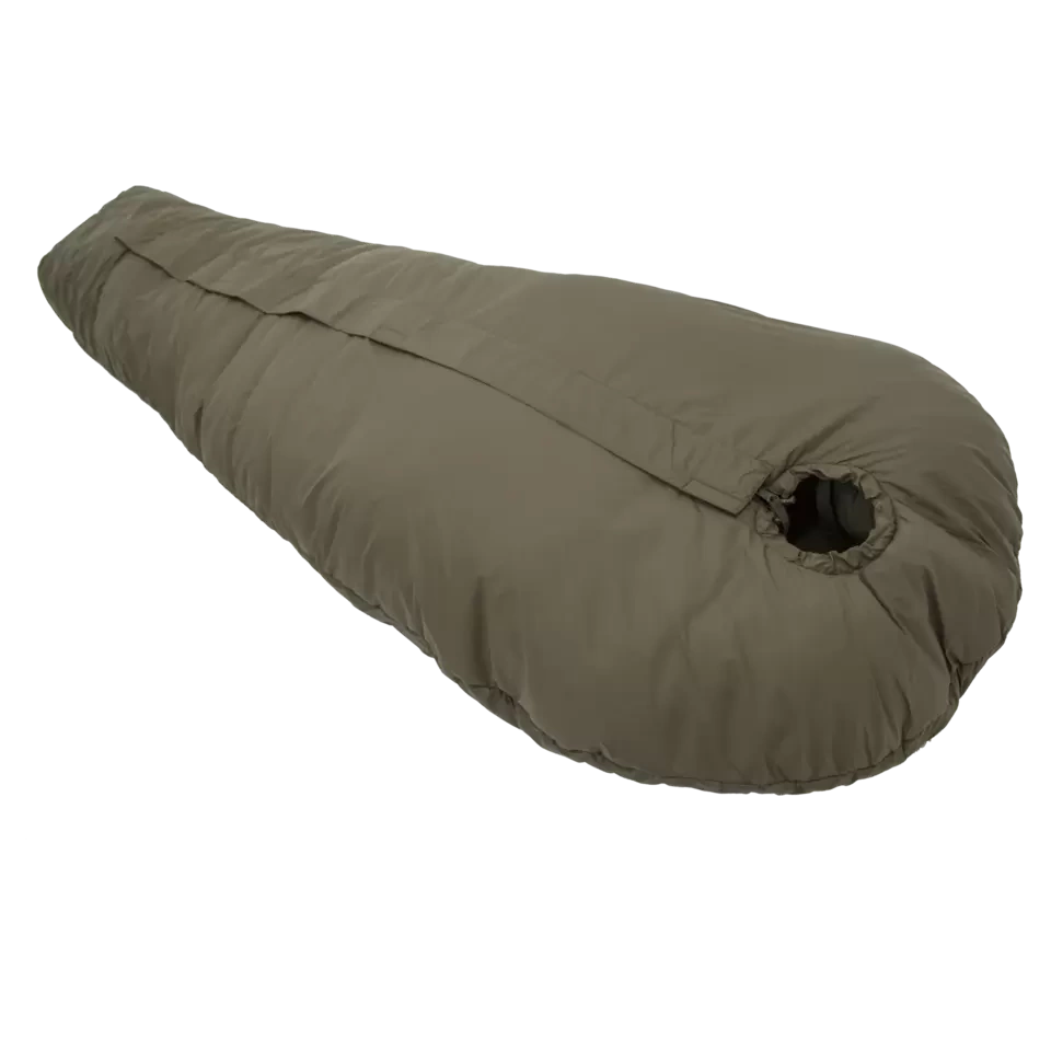 Defence 4 is a 3-season sleeping bag that comes from the military sector and is one of the best-selling sleeping bags in its class. It features a central zipper and an extremely robust and water-resistant outer material. The zippered flap protects against wind and moisture, and the integrated zipper heating strip prevents heat loss. The exterior is made of super-lightweight and highly durable microfiber nylon with a fine microporous coating that makes it water-repellent. There is a generous sealing tube on the inside of the zipper to prevent heat loss at the zipper.