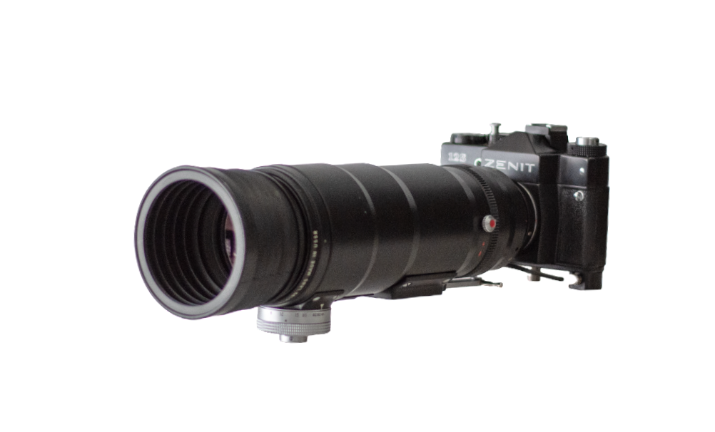 - the camera body: a Zenit ES (a Zenit E with an extra shutter release in the base)
