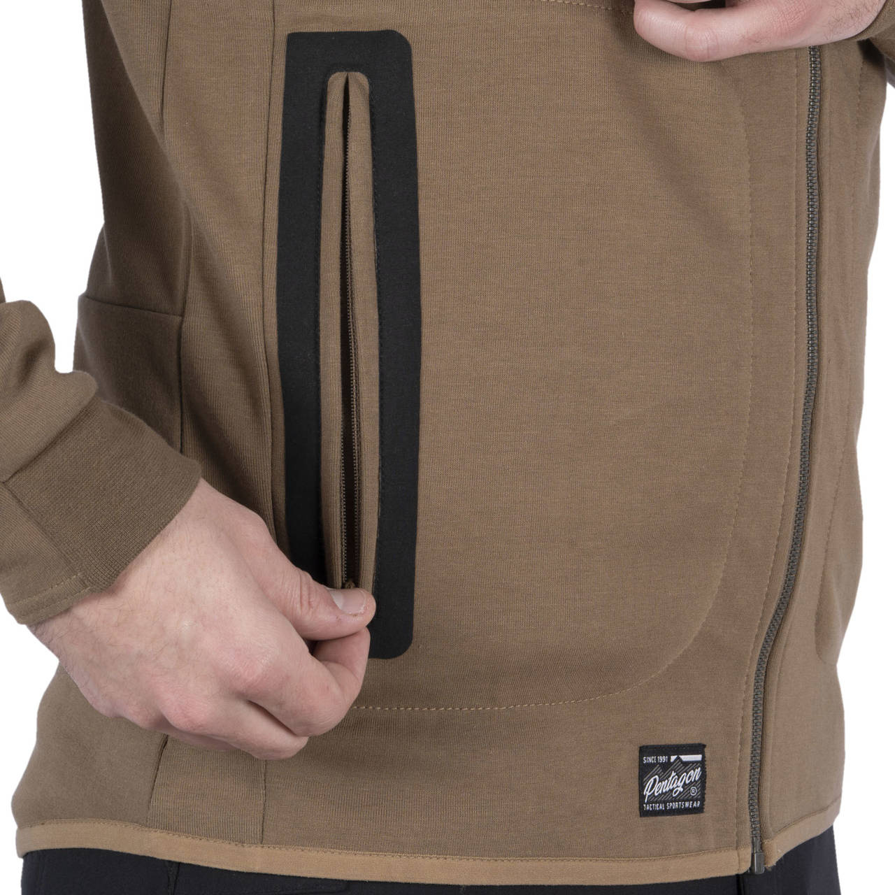 High-quality Pentagon® sweater, model 2.0 of the PENTATHLON series, with a fresh design, a smooth fabric, and a comfortable and unique slim fit, ideal for tactical or sports activities, on the shooting range, outdoor excursions, athletic activities, or simply for fashion.