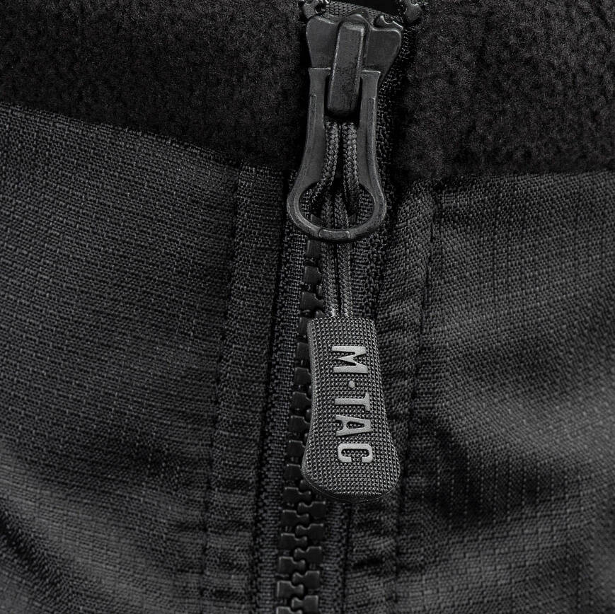 This second-generation fleece jacket from M-Tac is designed to be used instead of the third layer of ECWCS (Extended Cold Weather Clothing System). The product materials are fleece, 100% polyester (Oxford nylon), and laminated polyester mesh. Nylon inserts on the shoulders and sleeves. The jacket fastens with a double-sided plastic zipper. Equipped with five pockets. Velcro panels on the sleeves for attaching ID patches, and nylon windproof inserts on the cuffs. The lining, made of laminated polyester mesh, is soft and pleasant to the touch.