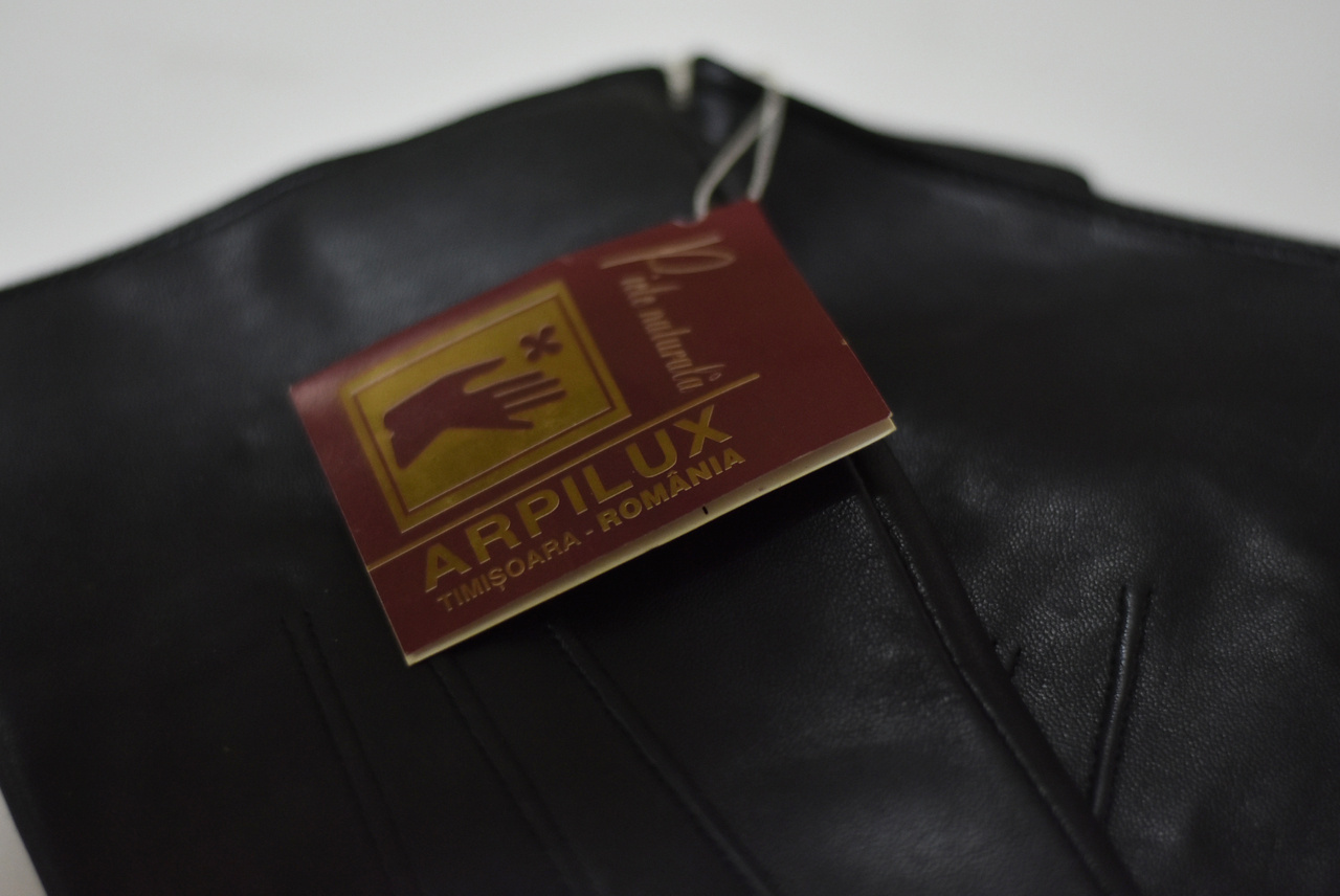 Natural leather gloves, very good quality, black colour, new, unused. Military surplus from Romanian army stock.