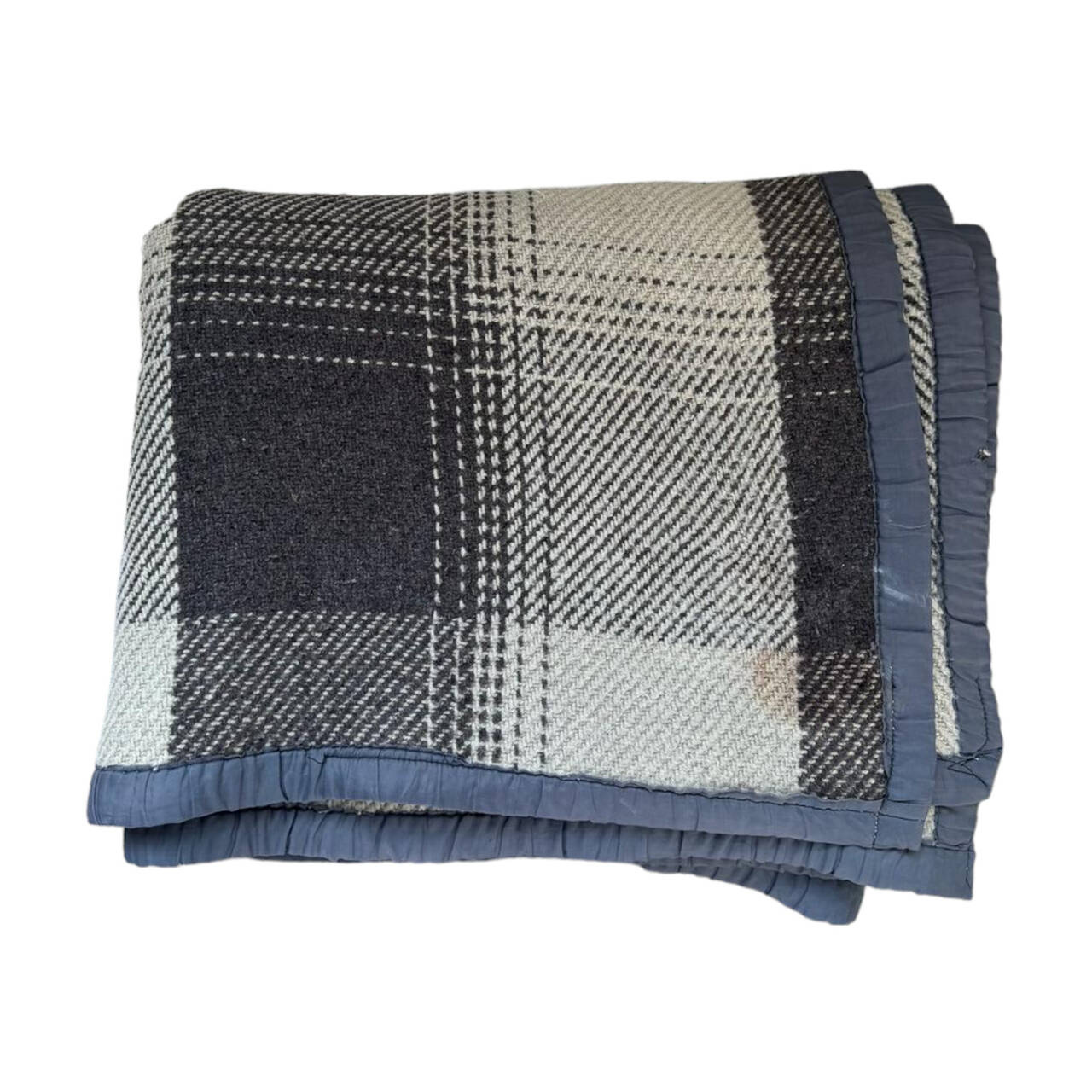 Used: The edge of the blanket may be loose or even missing. It may also have small holes caused by moths, small stains, stamps, light wear to the fabric in some areas, threads coming out, or evidence of handling or storage.