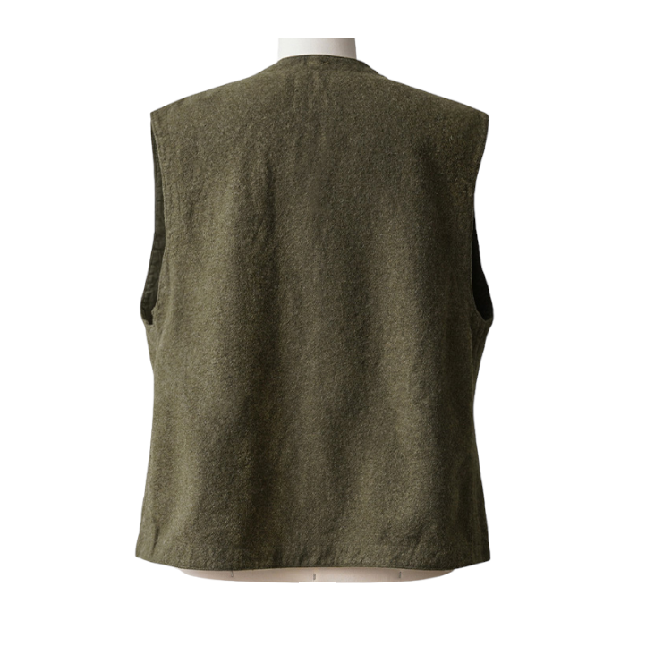 You don't often see items like this wool vest, it has a simple design that gives it a unique feel. The waistband is loose so you can wear it over sweatpants, sweatshirts, etc.