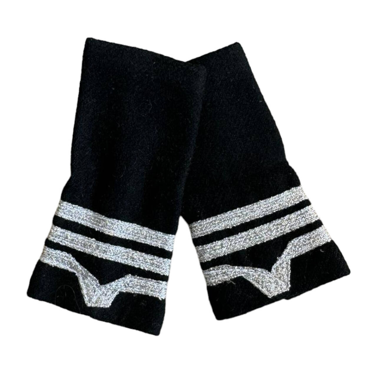 The military ranks are made in the form of a tubular sleeve with uneven ends, made on textile support of wool paspoal, embroidered with silver metallic thread.