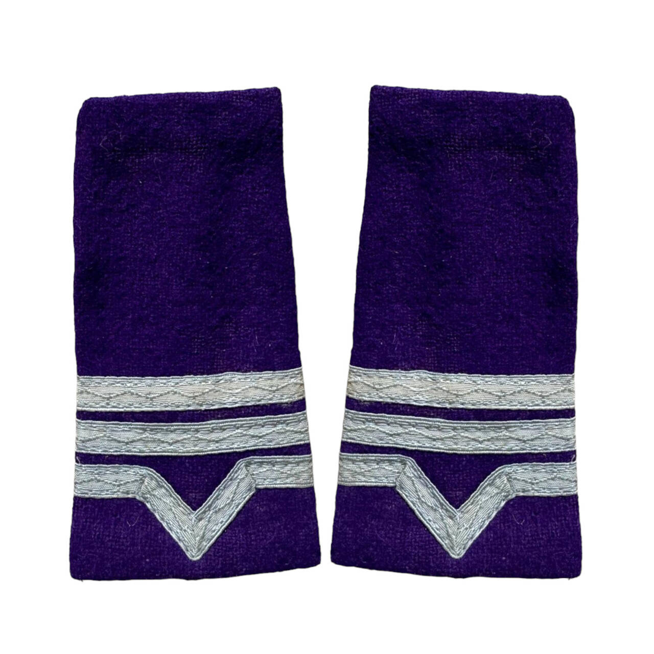 The military ranks are made in the form of a tubular sleeve with uneven ends, made on textile support of wool paspoal, embroidered with silver thread.