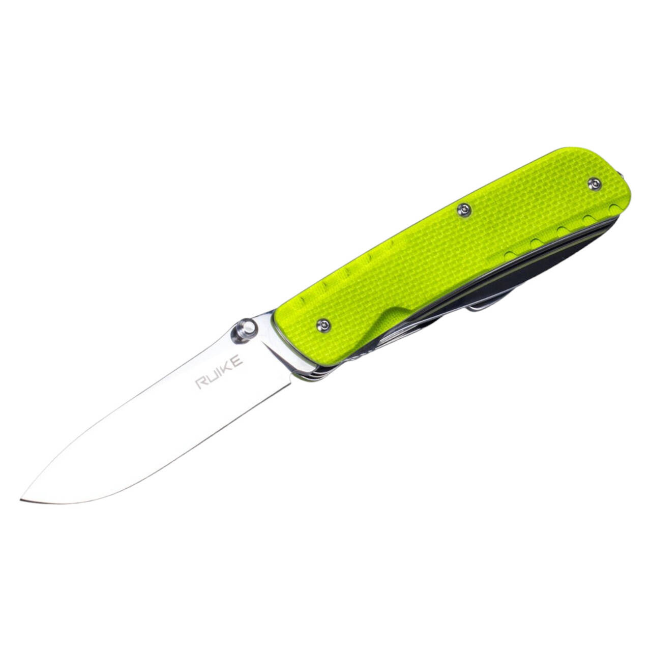 The LD43 is part of the LD series, which comes in various versatile tool combinations and is available in a variety of styles to meet the most varied requirements. This LD pocket knife comes with a pocket clip, can opener, screwdriver, scraper, bottle opener, wire stripper, Phillips screwdriver, wire bender, cutter hook, carabiner, tweezers, hacksaw, spear, and tungsten steel glass breaker. The 8.5 cm long Sandvik 12c27 stainless steel blade can be opened quickly and easily with one hand via a thumb button. The textured, signal yellow G10 handle sits comfortably in the hand for a secure grip.