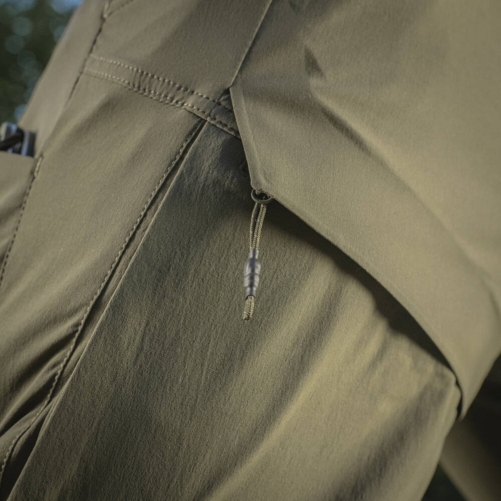 M-Tac Rubicon Flex Dark Olive shorts are a new addition to our summer collection. A characteristic feature of this model is the unusual design of cargo pockets, which are directed inward and located closer to the inner surface of the thigh. Rubicon is made of ultra-modern material "4-Way Stretch" (85% nylon and 15% spandex), thanks to which the shorts are stretched in all 4 directions and provide comfort during active use. In addition, the material is extremely resistant to fading and has a water-repellent treatment, which makes these shorts a great choice for summer.