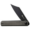 Sure to catch all eyes - the SENCUT Bronte catches the eye like a newly interpreted gentleman's knife. The otherwise slim lines are interrupted by the massive inverted tanto blade made of 9Cr18MoV, which allows for strong and precise cuts. The pocket knife opens with the discreet front flipper, while the liner lock ensures a reliable lock. The tart black stonewash finish of the blade forms a harmonious contrast to the dark green Micarta handle scales. With a reversible tip-up clip.