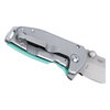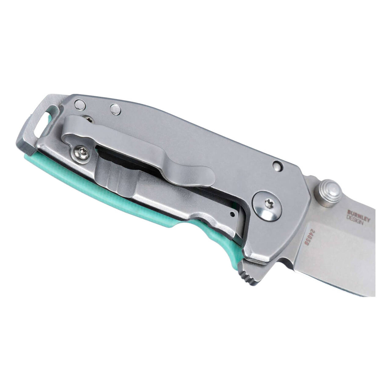 The CRKT Squid Compact by Lucas Burnley is based on the shape of a squid. The curved lines of the sea creature are reflected in the ergonomic stainless steel handle and sky-blue G10 handle scales and are continued in the ball-bearing blade made of edge-holding D2 with a stonewash finish. The high utility value of the assisted folder with frame lock is underscored by the thumb stud, jimpings and lanyard hole, making a weightless plunge into the world of EDC a breathtaking experience. With clip (tip-up/r).