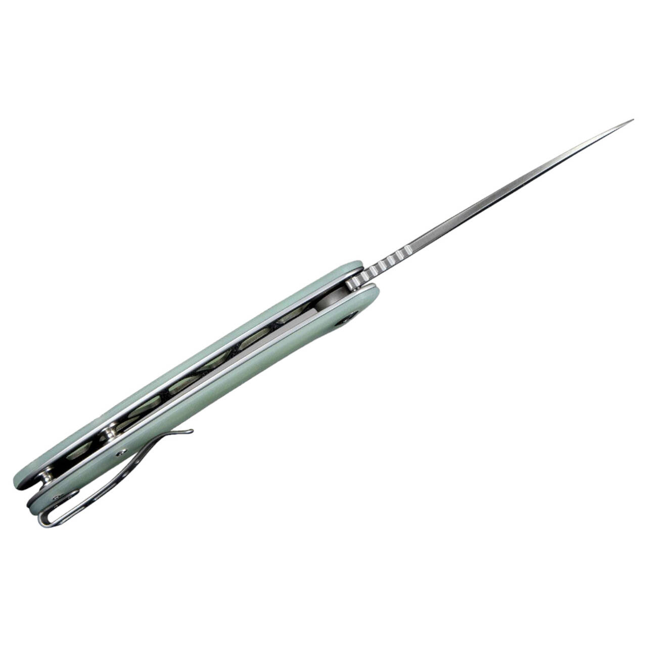 Named after the American city of San Angelo, SENCUT's eponymous knife marks EDC's Shining Star. Equipped with a leaf-shaped blade made from 9Cr18MoV and a jade green G10 scaled handle, the pocket knife offers a powerful mix for everyday cutting tasks. The flipper lock and liner lock for opening and unlocking the blade highlight the intuitive operating concept. With reversible tip-up clamp.