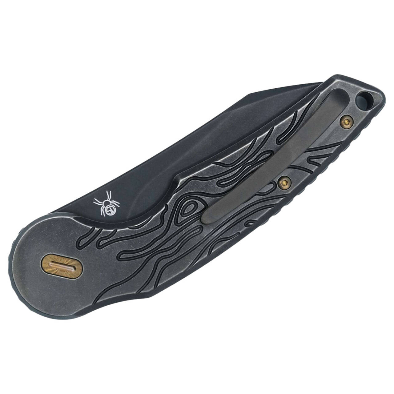 The knife orbit of Fox Knives has been extended by an extraordinary model. With Jupiter, Denis Simonutti sends another desirable knife with the sophisticated Radius Lock into orbit. The thumb stud moves around in a semi-circle in the front handle to open the knife and as a button lock to unlock it. The radius lock is supported by an additional slide lock to prevent accidental activation. The blade made of weightless M390 ensures an impressive cutting performance, while the titanium handle with bronze-colored elements leaves astonished looks. Only the tip-up clip (r) and the lanyard hole can cope with the pocket knife's gravity.