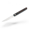 The slim design and the exclusive choice of materials make the Boker Plus Kwaiken Air a classy crossover between a gentleman's folder and a tactical knife. To make this bridging even easier, the Kwaiken Air Mini offers the same outstanding qualities as its big brother with significantly reduced and thus more pocket-friendly dimensions. With a straightforward and practical shape, the modern pocket knife has become a true icon. The clean lines and slim design have been further optimised for uncompromising weight reduction in the lightweight version, although the knife still holds the entire blade when closed. The flipper ensures intuitive operation and additional safety, while the linerlock securely locks the ball-bearing blade made of VG-10 with an impressive hairline finish. The lightness of the gentleman's folder is underlined by the handle scales made of classy cocobolo wood and the removable deep-carry clip (tip-up/r). Supplied with a lanyard hole and a high-quality nylon pouch for storage.