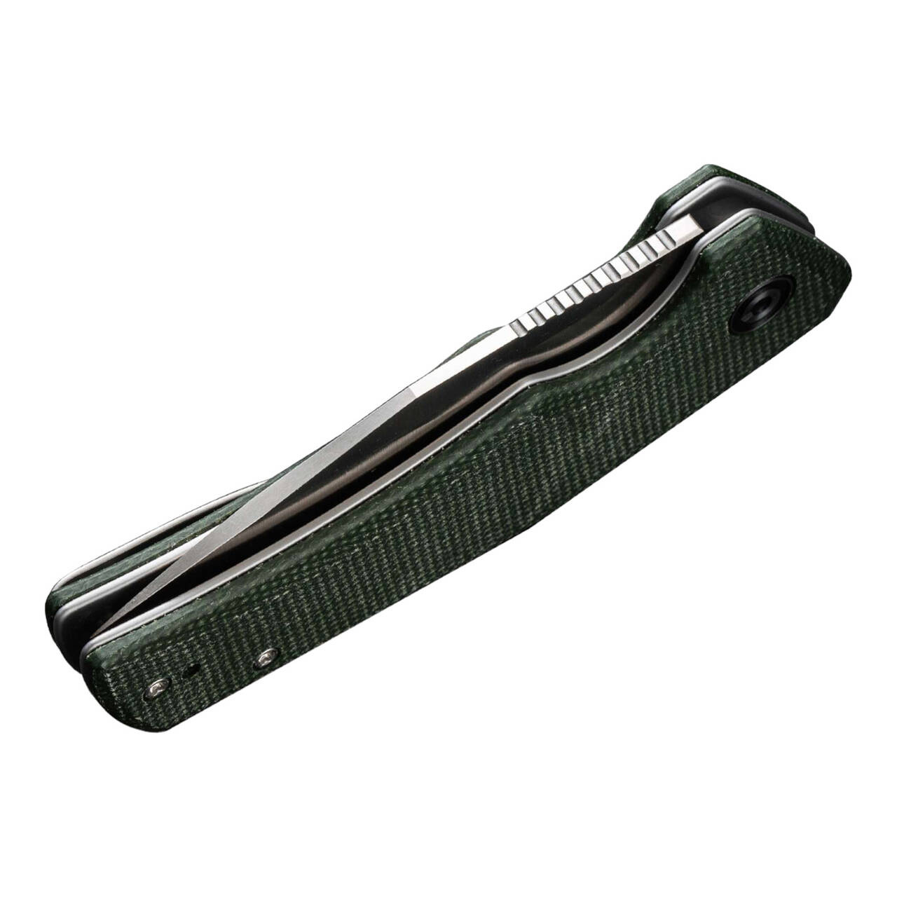Regulates things its own way - The CIVIVI Regulatron is an incorruptible EDC pocket knife with a ball-bearing Nitro-V blade with a satin finish and a flattering handle made of green Micarta. The direct, unbureaucratic approach is underlined by the intuitive operation with flipper and liner lock. With reversible tip-up clip.