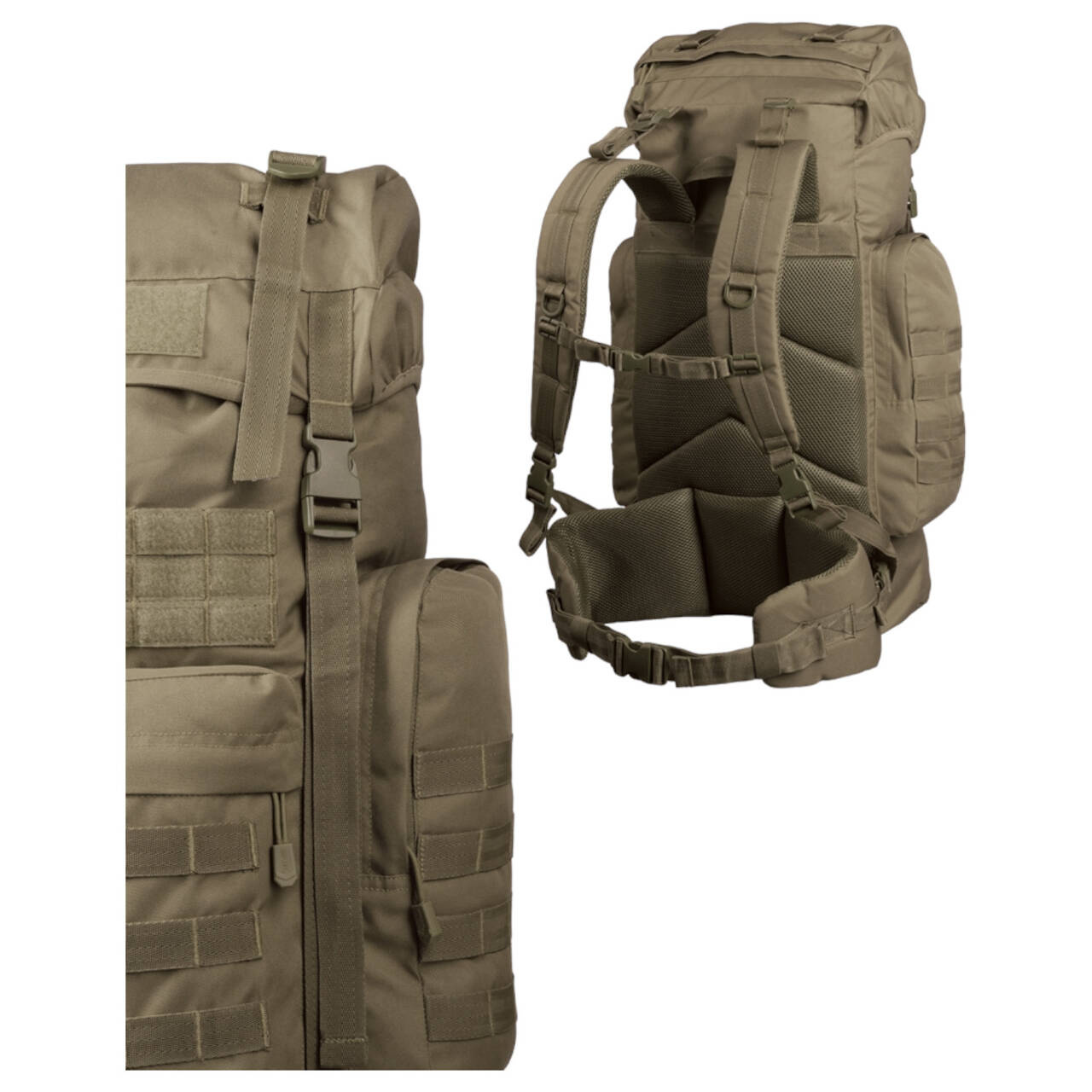 - two side pockets with zippers and molle attachment loops