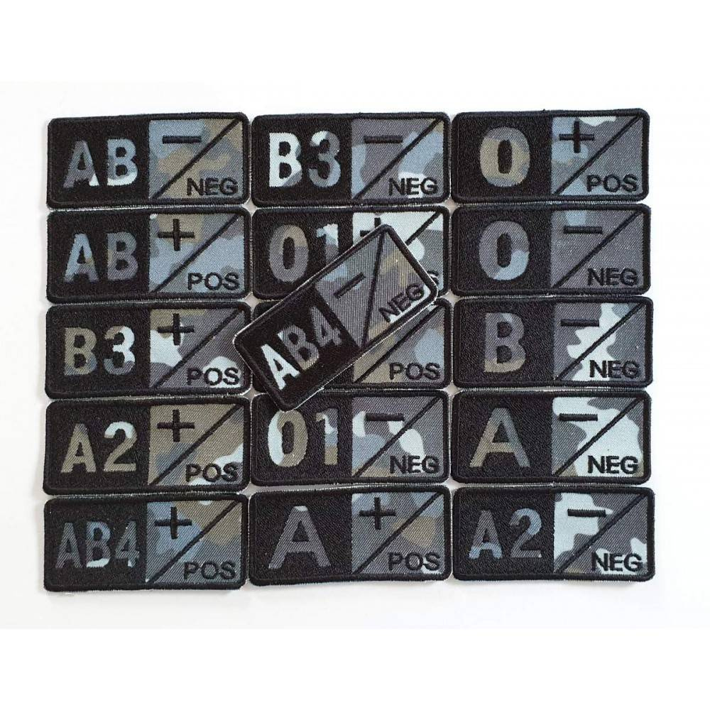 BLOOD GROUP camouflage badge, air force, high quality embroidery, resistant materials. Conforms to legal requirements. Size: 7.5 x 3.5 cm.