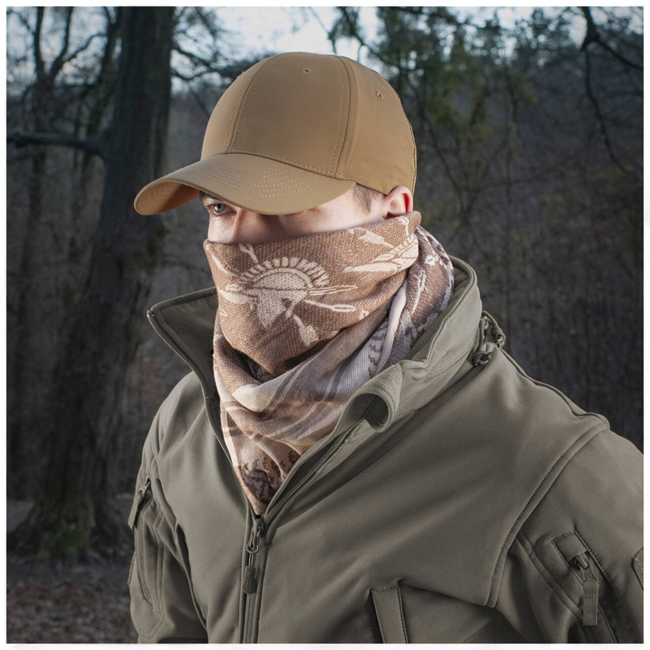 A shemagh scarf (better known in CIS countries as an 'arafatka') is designed to protect the head and neck from the effects of sand and sun and from the wind in cold weather. Many armies around the world use this scarf.