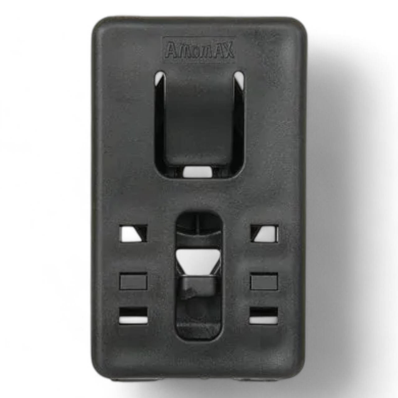 The Amomax belt adapter is compatible with Amomax pistol holsters. Mounts easily on the belt. Thanks to the clamping system, the holster can be mounted in any position.