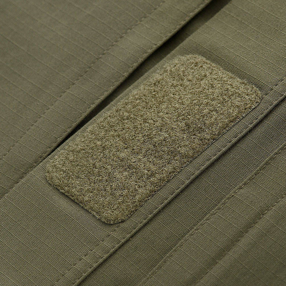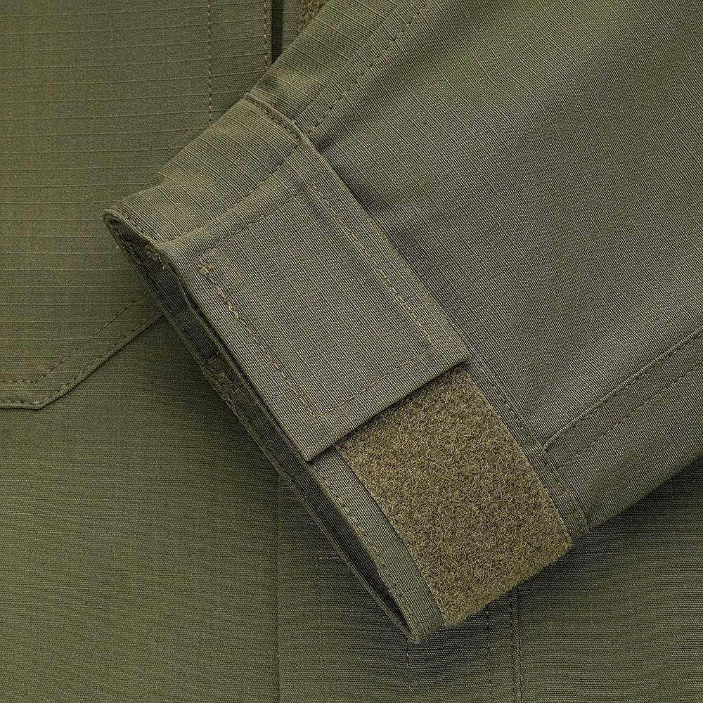 The M-Tac Patrol Flex jacket has a comfortable, slightly arched cut. It features a high collar, Velcro zipper, and a central closure system in the form of a removable plastic "tractor" zipper that covers the Velcro strips. On the chest are two concealed Velcro pockets with vertical entries for easy access to the contents, as well as horizontal Velcro panels for attaching name badges and medical data patches. Under the arm are embroidered vents for improved ventilation. On the sleeves - a patch pocket with vertical zippered entry and cartoons colored Velcro panel with compartments for attaching instruments or similar equipment. On the back, there is a reinforced yoke at the upper back, with a Velcro panel for an IR marker under the collar, and along the contour of the cuff are expanding pleats, which help to maintain freedom of movement of the arms, even when wearing a bulletproof vest or other protective gear over the jacket. The sleeves are equipped with a Velcro patch pocket for installing soft protection. The cuffs are adjustable with a Velcro flap.