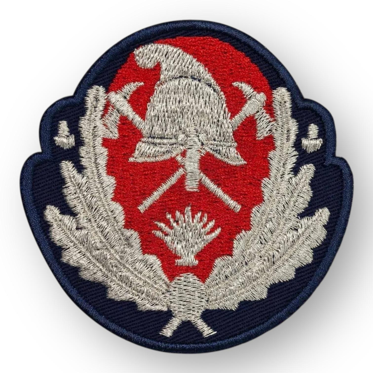 Emblema coifura ofiteri inferiori pompieri, brodata cu fir metalic, IGSU, pompieri, rezistenta la uzura, raze solare, ploaie, spalari multiple
