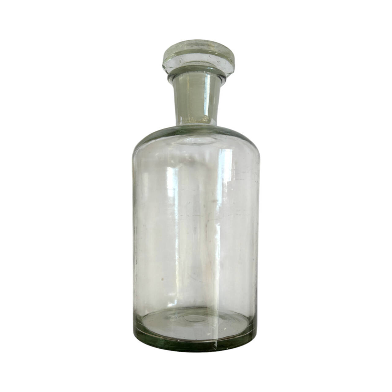 VINTAGE BOTTLE WITH GLASS STOPPER - VASE - 1980S - TRANSPARENT - ROMANIAN ARMY MILITARY SURPLUS - IN GOOD CONDITION