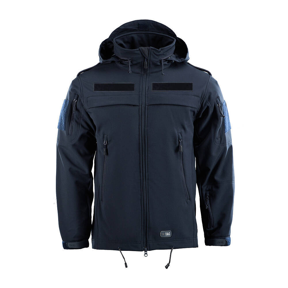 The M-TAC SoftShell police jacket is made from a weather-protective polyurethane inner membrane customized with Velcro panels and epaulets. It features a thin fleece lining on the inside. The dynamic cut allows for unrestricted movement. The hood, hidden in the collar, can be adjusted through chest pockets. It has two identification panels that can be either pulled out or concealed depending on the situation. The jacket also includes an empty panel, allowing for the operator's name to be embroidered or printed as needed. The M-Tac brand specialists have incorporated a system for convenient and quick access to weapons or other items on the belt. This system enables a smooth, single-motion retrieval of weapons, stun guns, or other accessories, significantly improving reaction time in dangerous situations. The remarkable properties of softshell jackets include their lightweight design and the combination of two layers of clothing into one. Softshell integrates the outer layer for wind and weather protection with an insulating inner layer. Not only does the surface repel moisture, but it also resists dirt. Additionally, the soft and smooth material adds comfort during wear. The front zipper is manufactured by YKK, known for its excellent zipper quality that performs its function seamlessly.