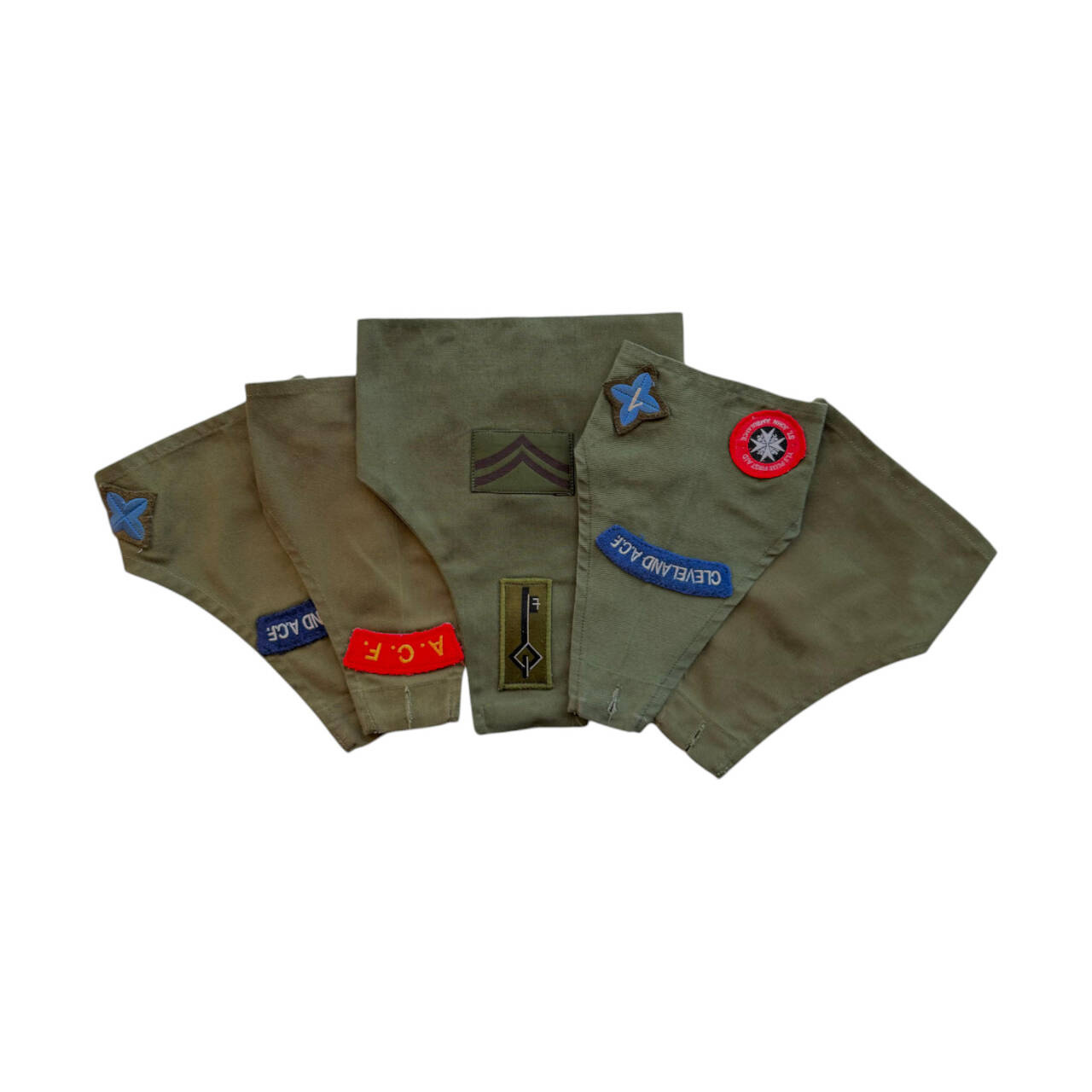 Markings and insignia: some of the bands are embroidered with different names, symbols or ranks (e.g. ‘CLEVELAND A.C.F.’, ‘A.C.F.’, stars or unit insignia).
